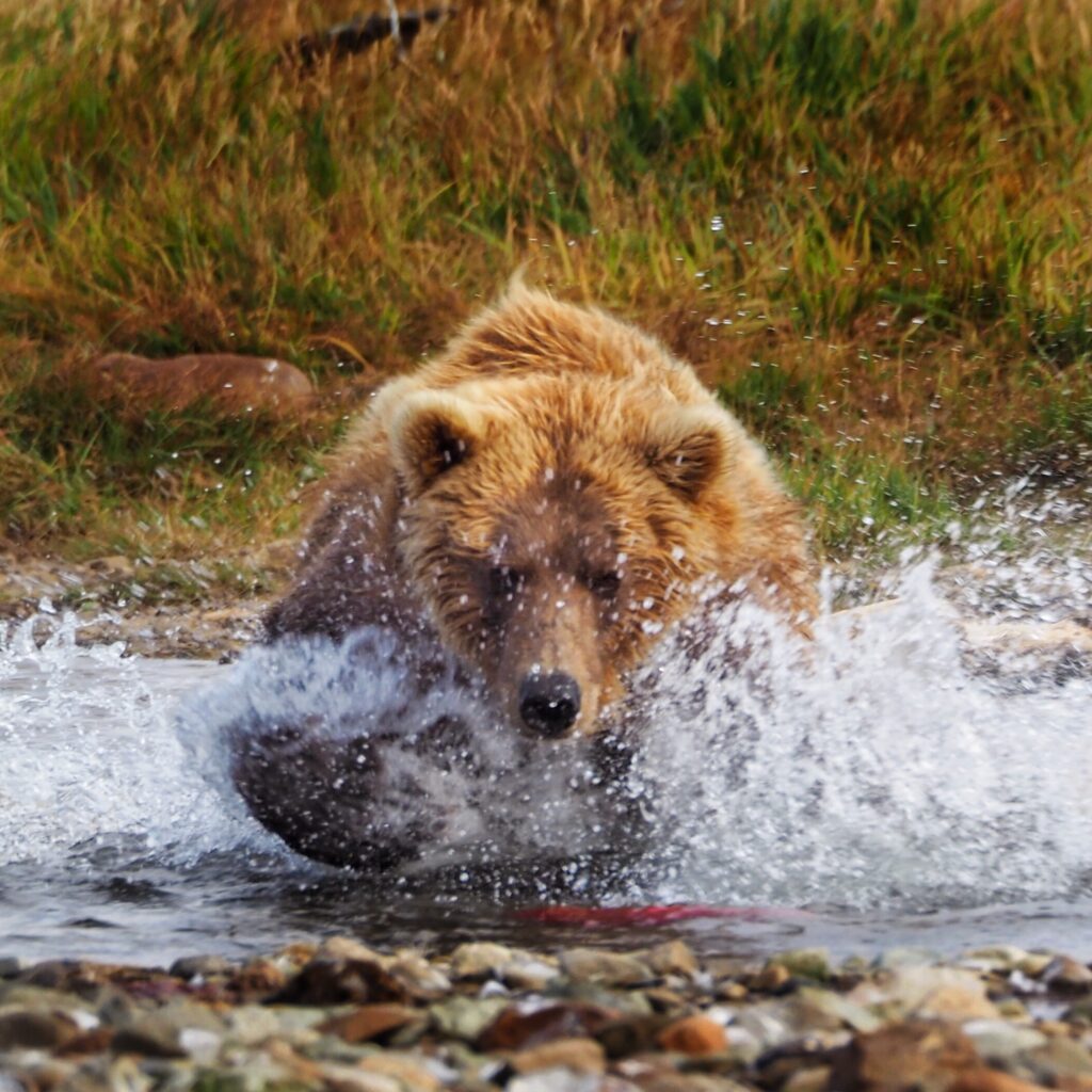 Katmai Bear running down a salmon in September