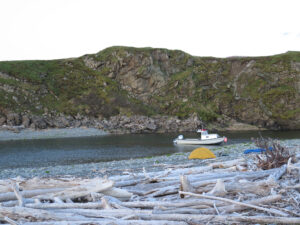 Unfortunately, the revised plan doesn’t pass the red face test either. Last week, Inletkeeper took Tolman skiffs from Homer roughly 85 miles across Cook Inlet to Amakdedori Creek.  Aside from the incredible beauty, something else jumps out the moment you step foot on the beach there.  For the entire length of the beach – stretching roughly two miles – massive drift wood berms line the upper beach. This area is a high-energy beach, with frequent, massive storms with so much power they can push gigantic logs up and over the storm berm.  In other words, there’s no way Pebble can hold, load and launch barges from a beach with 10 foot pounding waves crashing on the beach.
