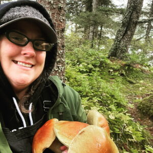 When my partner and I were starting to make plans to move away from Lake Superior and contemplating where to go, we had a simple punch list of what we wanted: beach, mountains, adventure, and I specifically wanted to learn more about growing and harvesting food. When we arrived in Homer December 2016, with only two tote-fulls of winter, work, and outdoor gear, the plan wasn’t to stay indefinitely. But after a few months, it sunk in that we could explore the Cook Inlet watershed our whole lives and only scratch the surface of what it provides. We were hooked, and six years later our outdoor gear has outgrown the totes, we have freezers full of pork and moose; and I can identify and use many wild plants and mushrooms found in Alaska. It is an honor and privilege to have the opportunity to work, play, and grow in this big, wild, and diverse ecosystem.